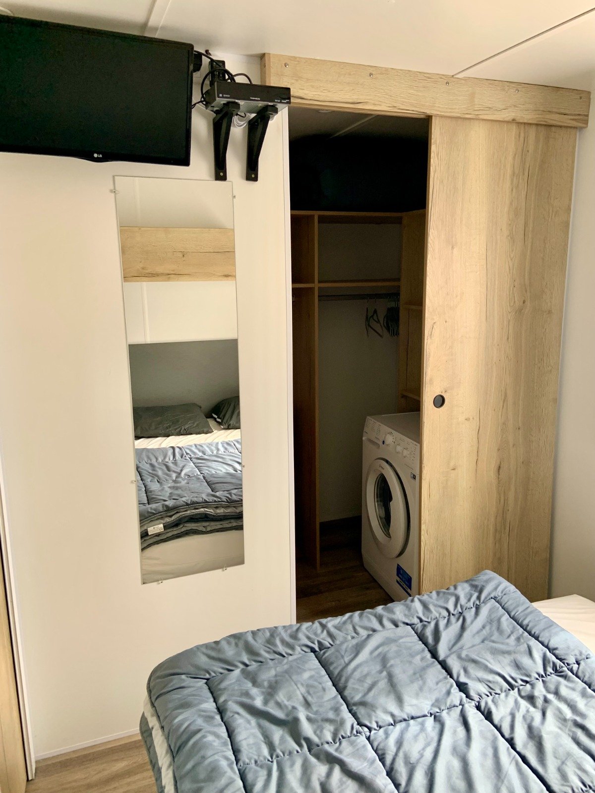 Offrant une vue reposante, le MOBIL-HOME comprend 3 chambres, un salon, 2 télévisions à écran plat, une cuisine équipée avec un lave-vaisselle, un lave-linge et un four, puis une salle de bains complète. Ce logement est insonorisé de dernière génération et traité : anti-allergique et non-fumeurs.